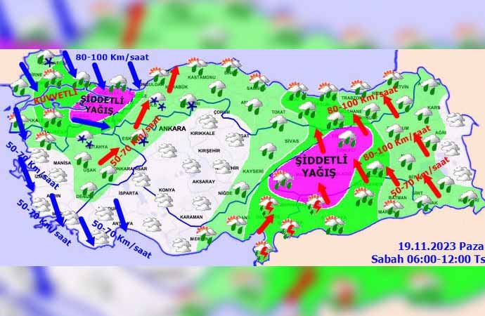 MGM tarafından paylaşılan 19 Kasım hava durumu raporu şöyle: