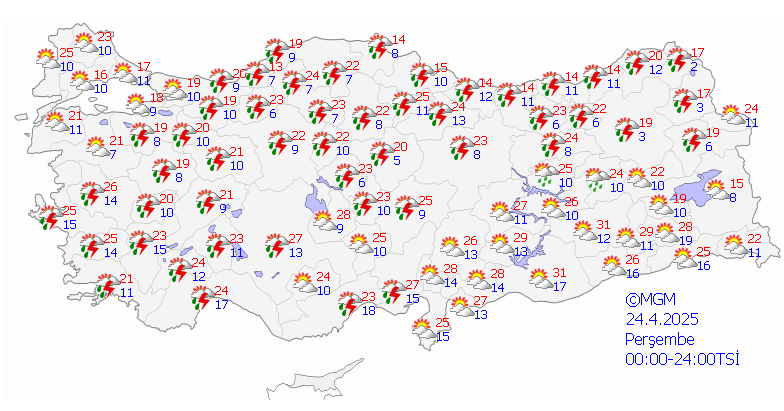 Meteoroloji Genel Müdürlüğü tarafından yapılan tahminlere göre: Ülkemiz genelinin parçalı yer yer çok bulutlu, İç Ege, Göller Yöresi, İç Anadolu’nun kuzey ve doğusu, Karadeniz’in iç kesimleri, Doğu Anadolu’nun doğusu ile Muğla, Giresun ve Siirt çevreleri, Aydın'ın güney ilçeleri ve Antalya'nın batı kesimlerinin aralıklı sağanak ve gök gürültülü sağanak yağışlı geçeceği tahmin ediliyor. Sabah ve gece saatlerinde Marmara'nın güneyi ile Karadeniz kıyılarında pus ve yer yer sis bekleniyor. Rüzgarın; Doğu Anadolu’nun doğusunda güney ve güneybatı yönlerden kuvvetli olarak (30-50 km/saat) esmesi bekleniyor. İşte 5 günlük hava durumu...