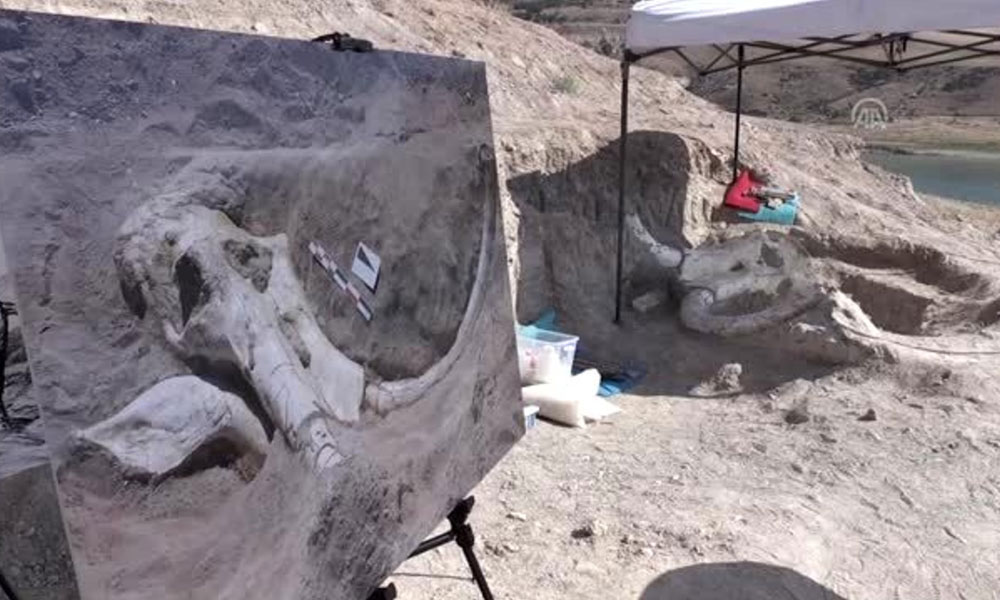 Kayseri’de "Choerolophodon" cinsine ait tek parça halinde bulunan 7,5 milyon yıllık mamut fosili, basına ve kamuoyuna tanıtıldı.