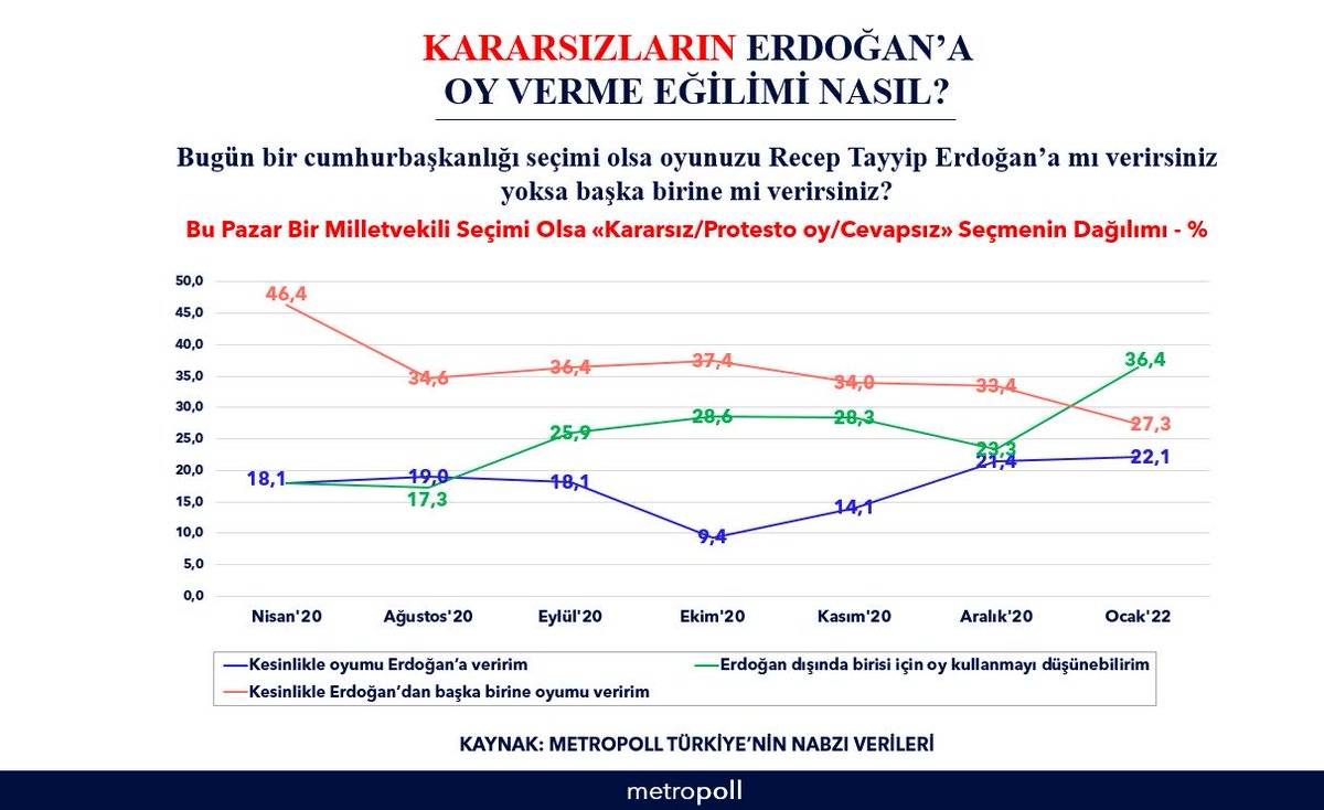 Metropoll Araştırma kurucusu ve yöneticisi Özer Sencar, kararsızların AKP'li Cumhurbaşkanı Recep Tayyip Erdoğan'a oy verme eğilimini analiz eden araştırmanın sonuçlarını paylaştı.