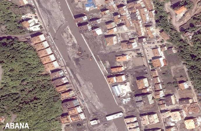 Batı Karadeniz'deki sel felaketinin etkileri uydu görüntülerine yansıdı. MSB, Kastamonu'da sel felaketi sonrası hasar tespiti için uydu ile çekilen fotoğrafları paylaştı.