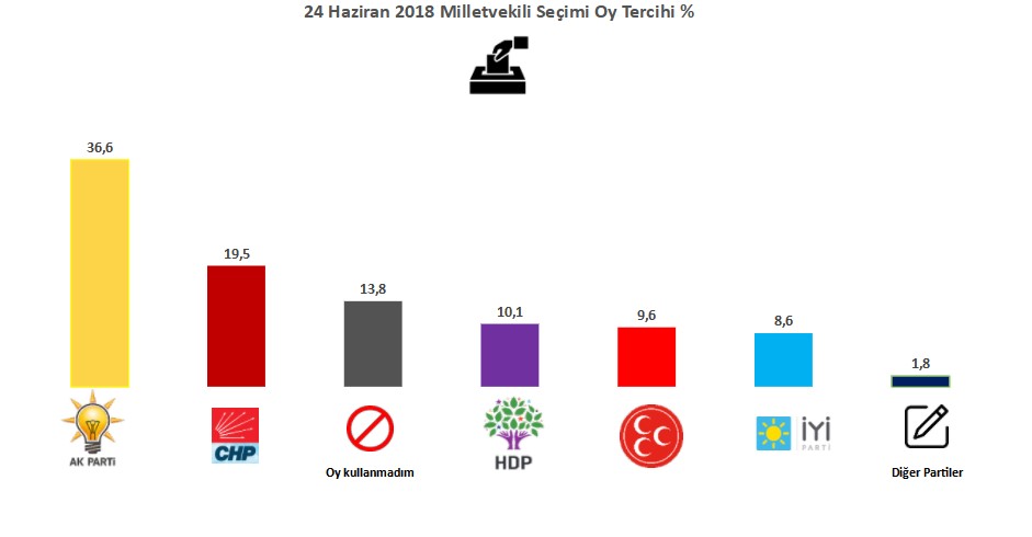 Araştırmanın sonuçlarına göre; “Bu pazar bir milletvekili seçimi olsa hangi partiye oy verirsiniz?” sorusuna katılımcıların yüzde 13,8’i ‘kararsız olduğunu’, ‘belirtmek istemediğini’ ve ‘oy kullanmayı düşünmediğini’ ifade etti.