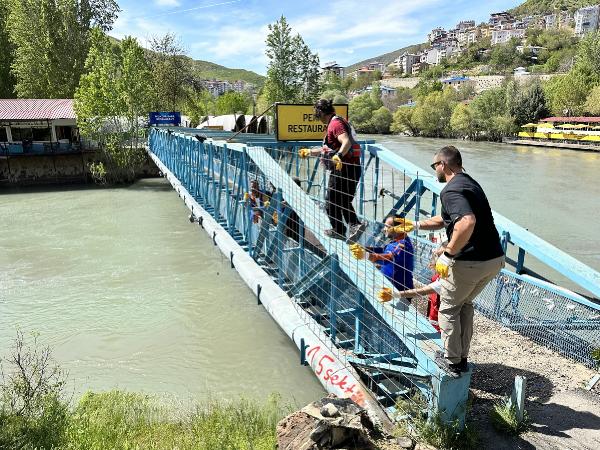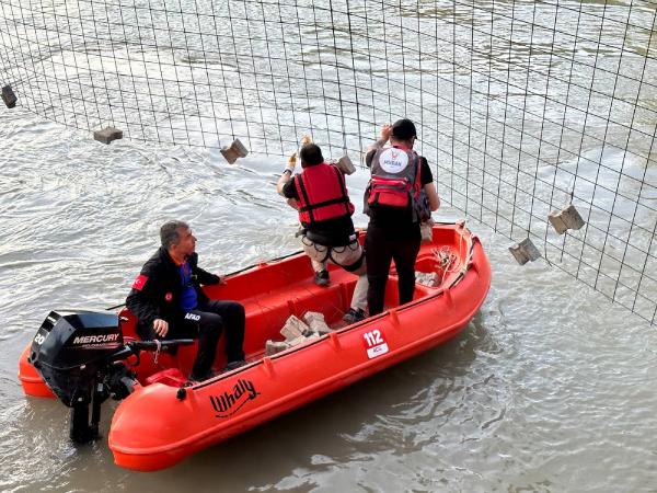 Ekipler, debinin düşmesiyle, Munzur Çayı'ndan geçen ve Uzunçayır Baraj Gölü'ne sınır olan Mavi Köprü üzerinde çelik ağları birleştirip, alt kısmına da ağırlık sağlaması amacıyla taş bağlayıp suya bıraktı.