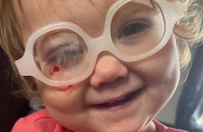 Bebeğina annesi Louise Bice, "Aretria'nın gözlerinden birinin 6 aylıkken bulanıklaştığını fark ettim. Bebek mavisi gözlerinden biri süt rengine döndü ve herhangi bir ışıkta acı içinde çığlık atıyordu. Teşhis konulduktan sonra bir dizi ameliyat geçirdi, son ikisinde gözlerindeki fazla sıvıyı boşaltmak için bir tüp takıldı ama hepsi başarısız oldu, hatta bir tanesinde kan ağladı. "Gözlerinden kıpkırmızı kan akıyordu. Sanki o korku filmlerinden birinden çıkmış gibi hissettim.Şimdi altıncı operasyonu geçirecek. Gözleri büyümeye devam ediyor ve tedavi sonrası bile küçülme şansı yok. Aşırı derecede miyop ve bu da ilerliyor. Kör olma riskiyle karşı karşıya" diye konuştu.