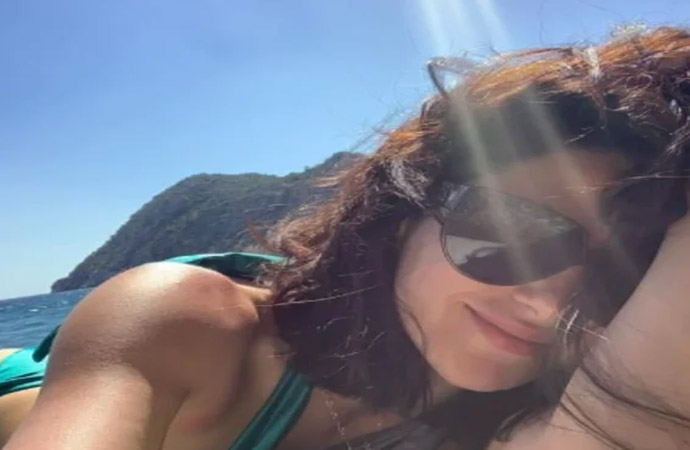Tatile çıktığı görülen Cavadzade, şezlongda güneşlendiği anları takipçilerine aktardı.