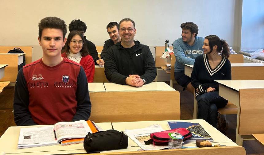 12. sınıf öğrencileriyle akademik hayatına ve Nobel Ödülü'ne dair sohbet eden Acemoğlu, daha sonra kendi sınıfı 12 FEN/B sınıfında öğrencilerle etüde katıldı.