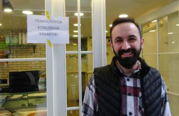İşyerinin duvarına ‘Trabzonspor konuşmak yasaktır’ yazısı asılmasına izin veren Şaban Derman, “Yazıyı asan, esnaf arkadaşımızdır. İzin isteyince verdik. Komik de oldu.