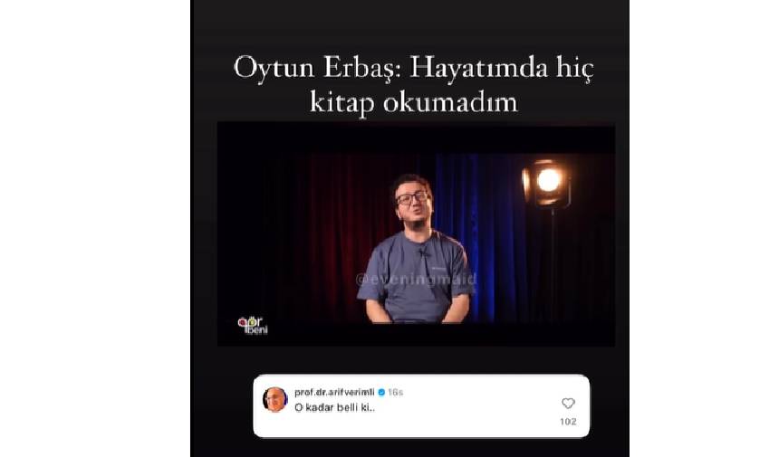 Programın yeni bölümünde "Hayatımda hiç kitap okumadım" diyen Oytun Erbaş'ın itirafına karşılık Prof. Dr. Arif Verimli'nin verdiği yanıt kullanıcıların radarına yakalandı.
