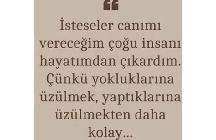 Ünlü isim, ardından Sabahattin Ali'nin "İsteseler canımı vereceğim çoğu insanı hayatımdan çıkardım. Çünkü yokluklarına üzülmek, yaptıklarını üzülmekten daha kolay…" sözleriyle kırgınlığını dile getirdi.
