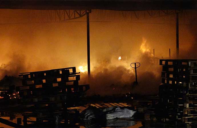 Bursa Yıldırım ilçesi Sakarya Mahallesi'nde bulunan bir palet imalat fabrikasında saat 02.00 sıralarında henüz bilinmeyen bir nedenle meydana geldi. Kısa sürede büyüyen alevleri fark eden çevredeki vatandaşlar, durumu 112 Acil Çağrı Merkezi'ne bildirdi.