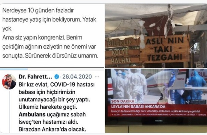 Takı yapıp satarak geçimini sağlamaya çalışan Aslı Özkısırlar, İzmir’de hastanelerde yatak bulamadığı için Sağlık Bakanı Fahrettin Koca’ya isyan etmişti. Özkısırlar yaşamını yitirdi. Pandeminin ilk günlerinde Emrullah Gülüşken isimli Türkiye vatandaşının İsveç’ten özel jetle Türkiye’ye getirilerek tedavi edilmesi gündem olmuş, olayın siyasi bir şov olduğu ileri sürülmüştü.