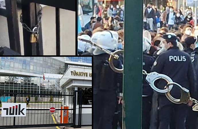 2021'e kilit sahneleri damga vurdu. Ocak ayında Melih Bulu'nun Boğaziçi Üniversitesi'ne atanmasıyla protestolar başladı. Polis öğrencileri engellemek için kapıyı kilitleyip kelepçe vurdu. Bu durum alışkanlık haline geldi ve TÜİK MEB'e kadar uzandı. Kılıçdaroğlu enflasyon verisi sonra TÜİK'i ziyaret etmek istedi. Ama kapılar kapandı. Öğretmenlerin atanmama sorunu ile ilgili daha sonra MEB ile görüşmek isteyen Kılıçdaroğlu'na yine red geldi. Bu kez MEB kapısına kilit vuruldu.