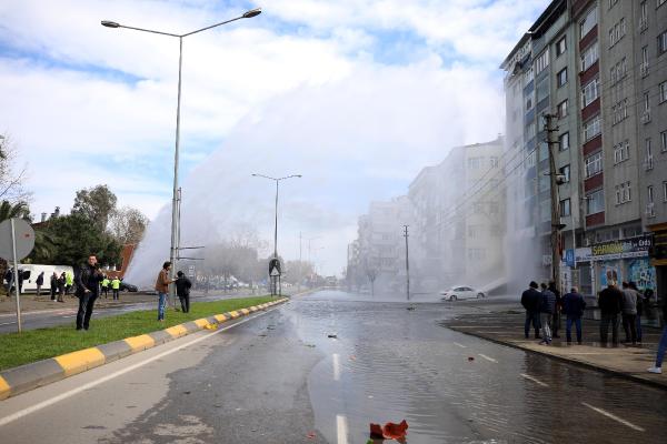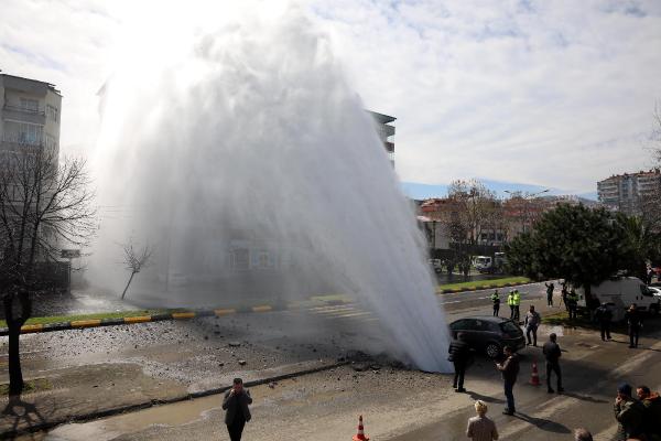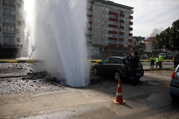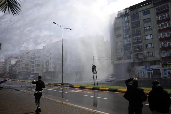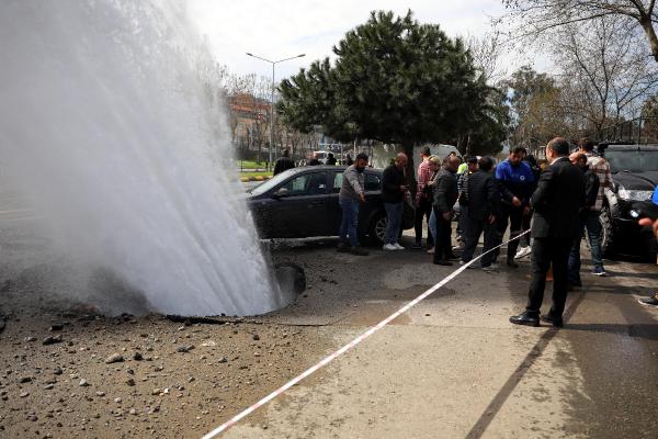 Görüntülerde; patlama ile yarılan asfalttan fışkıran suyun saniyeler içinde metrelerce yükseğe ulaştığı görüldü.