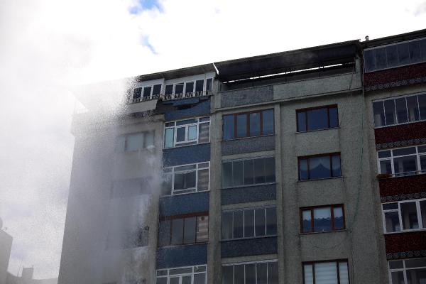Su basan yol çift yönlü ulaşıma kapatılırken, 8 katlı apartmanın hasar gören çatı katı tedbir amaçlı boşaltıldı.