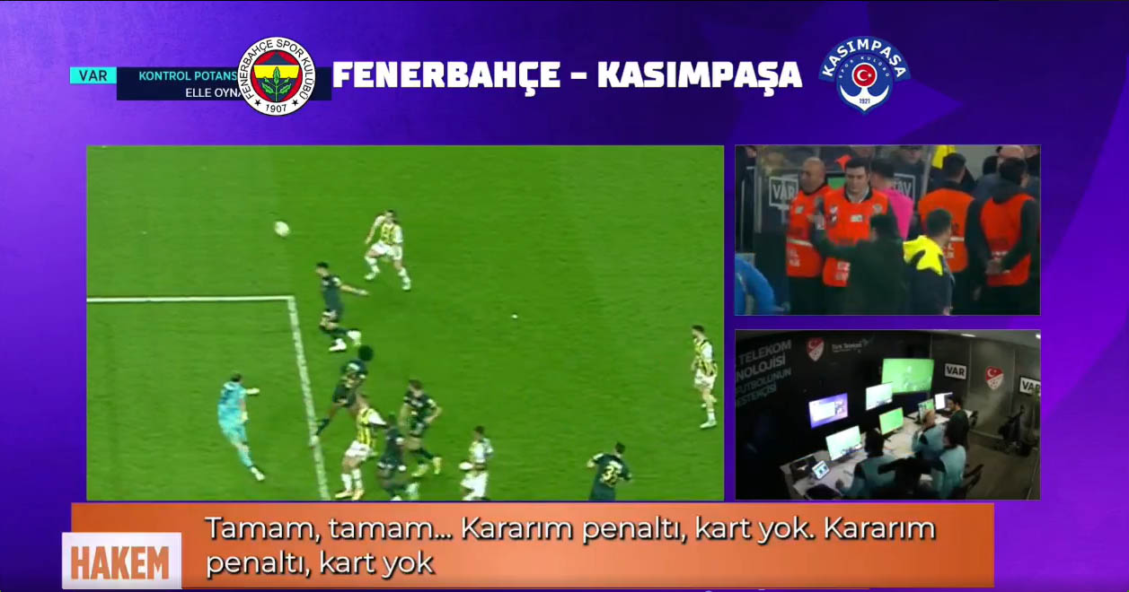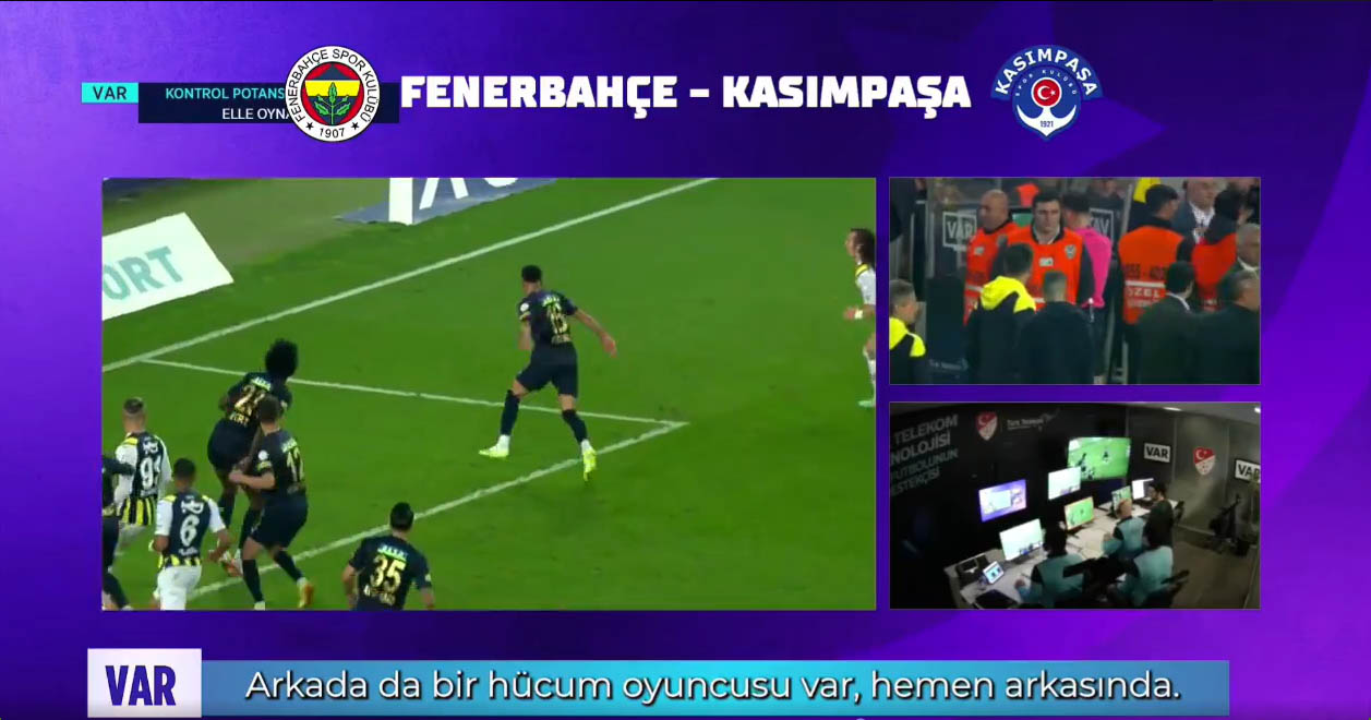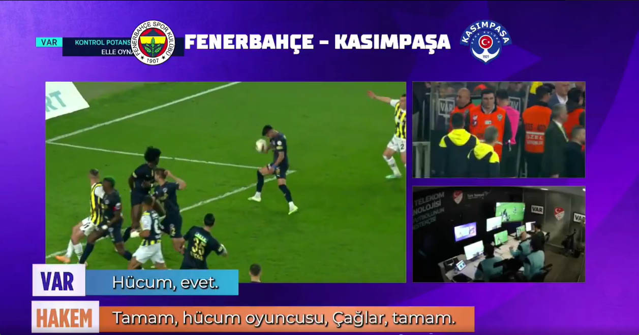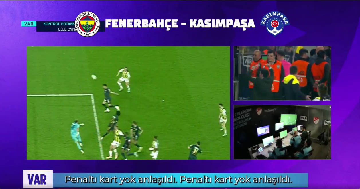 Trendyol Süper Lig'in 27'nci haftasında Fenerbahçe Ülker Stadyumu'nda Kasımpaşa'yı konuk etti. Maçı Fenerbahçe 2-1 kazandı. Fenerbahçe'ye galibiyeti getiren golleri 64. dakikada frikikten Mert Hakan Yandaş ve 90+6. dakikada Michy Batshuayi kaydetti. Fenerbahçe-Kasımpaşa maçında sarı lacivertli takımın 90+5. dakikada kazandığı penaltı gündem oldu. VAR müdahalesiyle monitöre giden hakem Cihan Aydın topun Kasımpaşalı futbolcu Yunus Emre Gedik'in eline çarptığını söyleyerek penaltı noktasını gösterdi. Bu penaltı kararı sosyal medyada tartışma konusu oldu. TFF, Fenerbahçe - Kasımpaşa maçının VAR kaydını açıkladı.