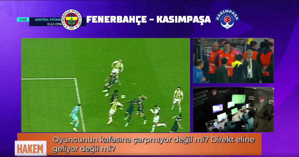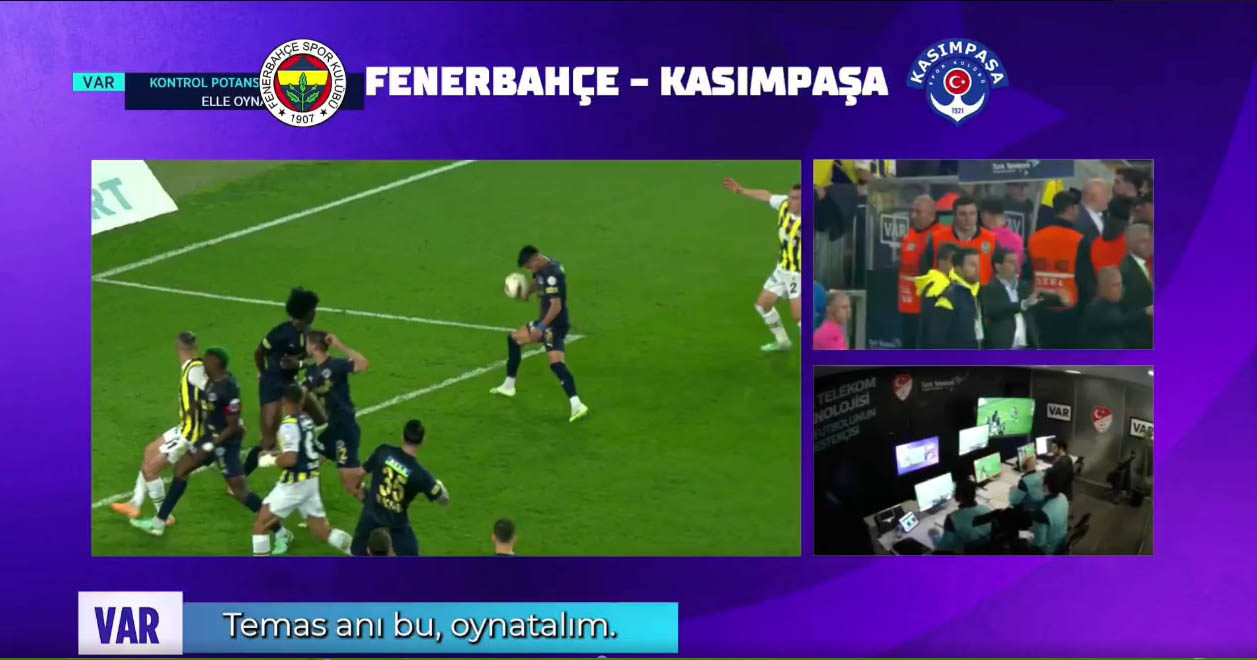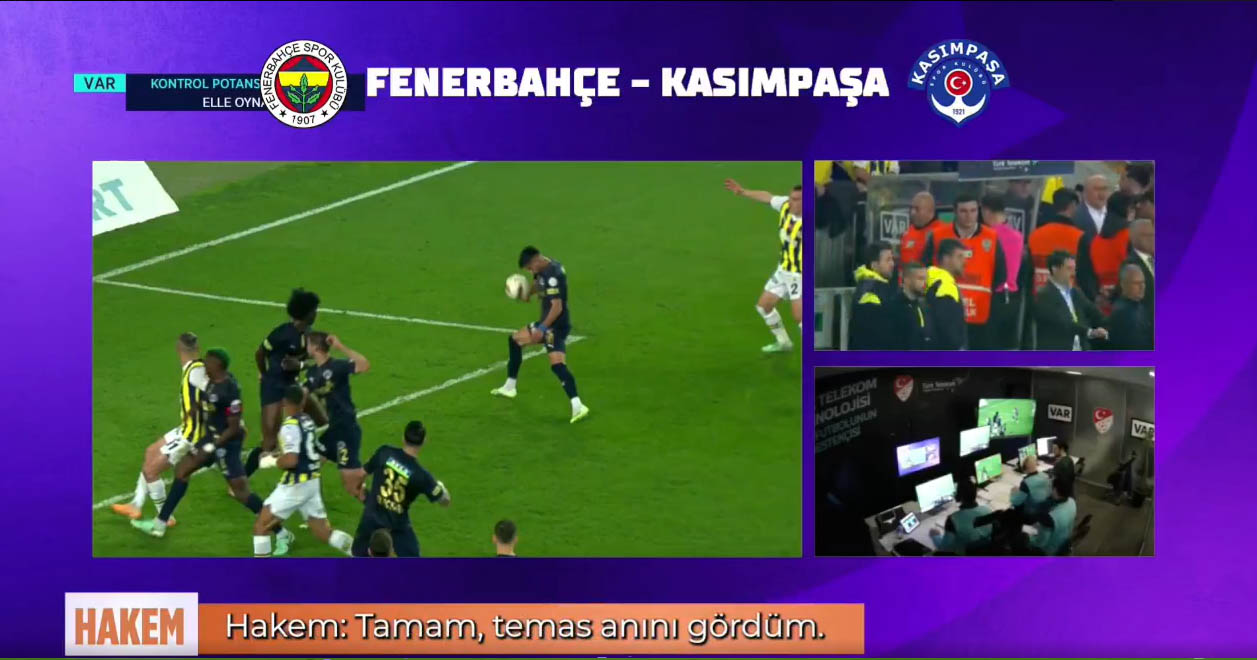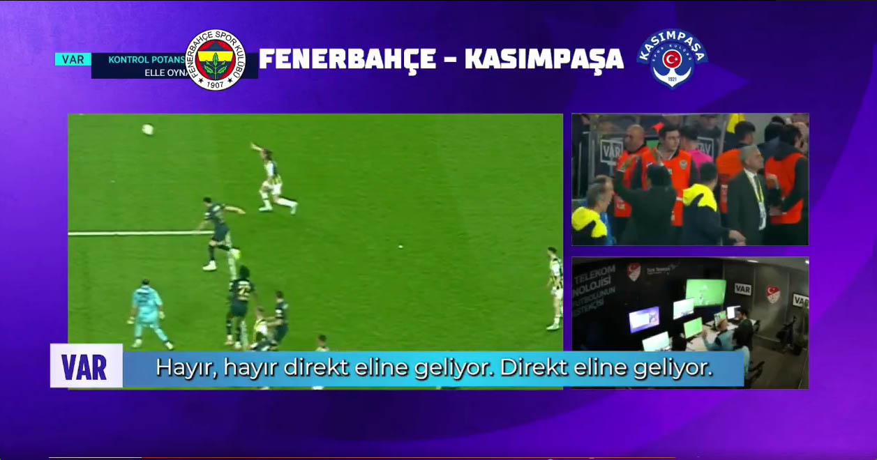 Trendyol Süper Lig'in 27'nci haftasında Fenerbahçe Ülker Stadyumu'nda Kasımpaşa'yı konuk etti. Maçı Fenerbahçe 2-1 kazandı. Fenerbahçe'ye galibiyeti getiren golleri 64. dakikada frikikten Mert Hakan Yandaş ve 90+6. dakikada Michy Batshuayi kaydetti. Fenerbahçe-Kasımpaşa maçında sarı lacivertli takımın 90+5. dakikada kazandığı penaltı gündem oldu. VAR müdahalesiyle monitöre giden hakem Cihan Aydın topun Kasımpaşalı futbolcu Yunus Emre Gedik'in eline çarptığını söyleyerek penaltı noktasını gösterdi. Bu penaltı kararı sosyal medyada tartışma konusu oldu. TFF, Fenerbahçe - Kasımpaşa maçının VAR kaydını açıkladı.