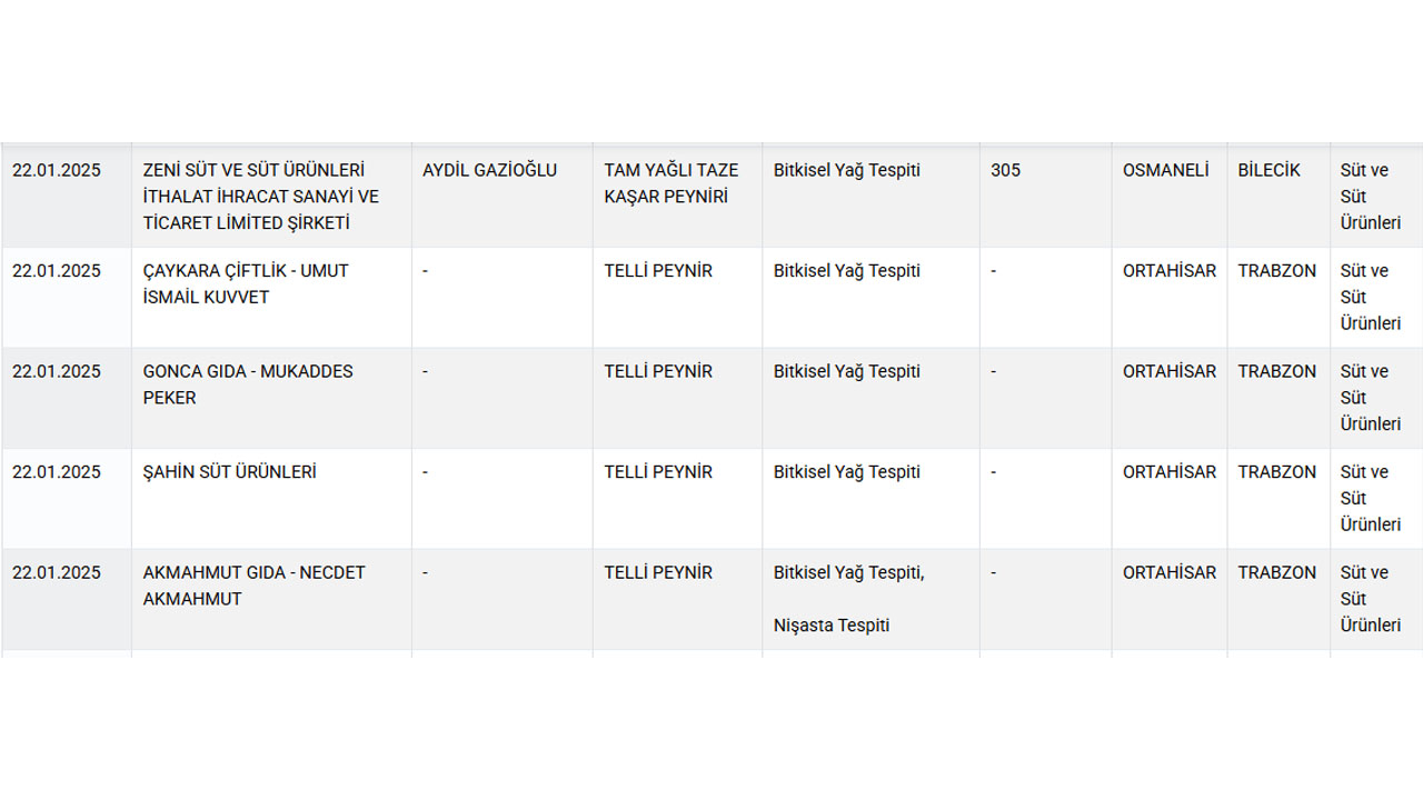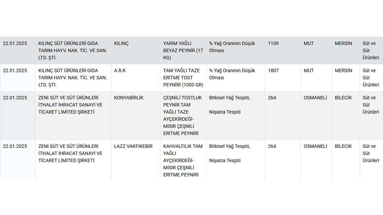 İşte, 'Taklit veya Tağşiş Yapılan Gıdalar' listesine 22 Ocak'ta eklenen peynir markaları...