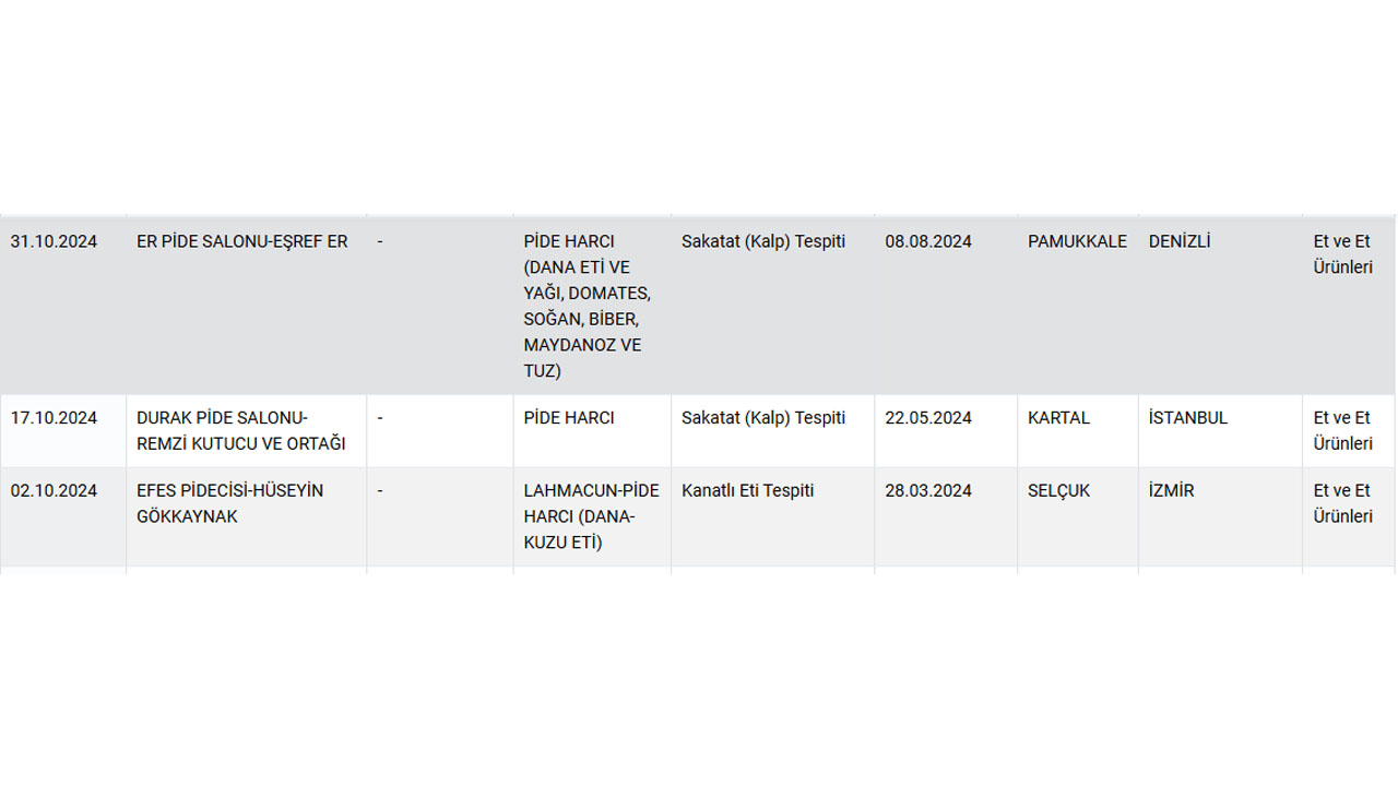İşte, 'Taklit veya Tağşiş Yapılan Gıdalar' listesinde yer alan pideciler...