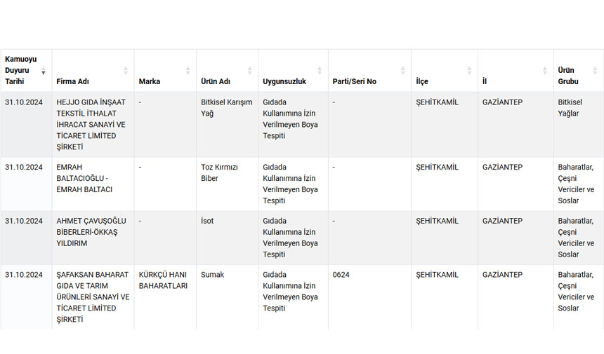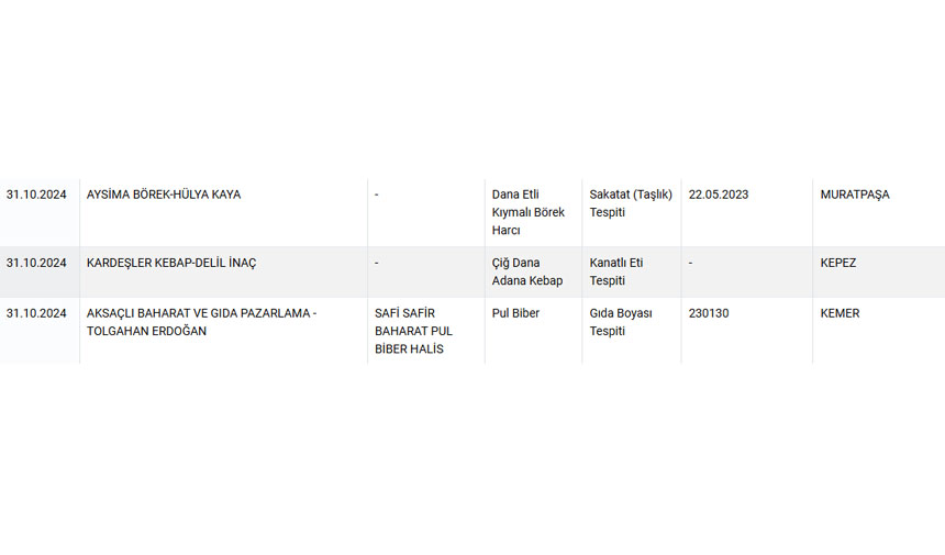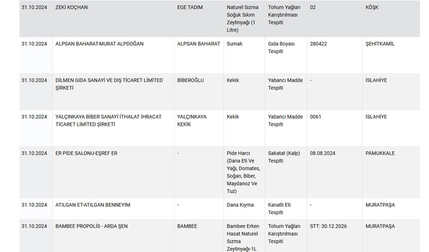 Tarım ve Orman Bakanlığı yaptığı denetimler sonrası uygunsuz olan ürünleri ifşa etmeye devam ediyor.