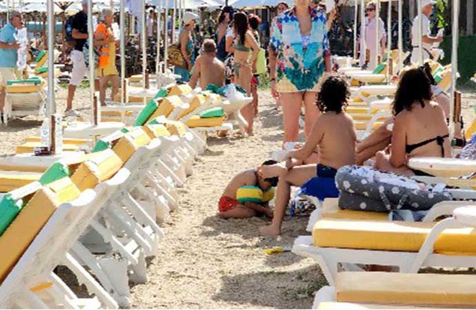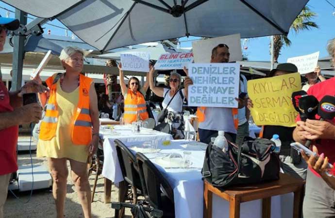 Eylemde 2 kilometrelik halk plajının restoran ve oteller tarafından denizin içine kadar işgal edildiği çarpıcı şekilde ortaya çıktı.
