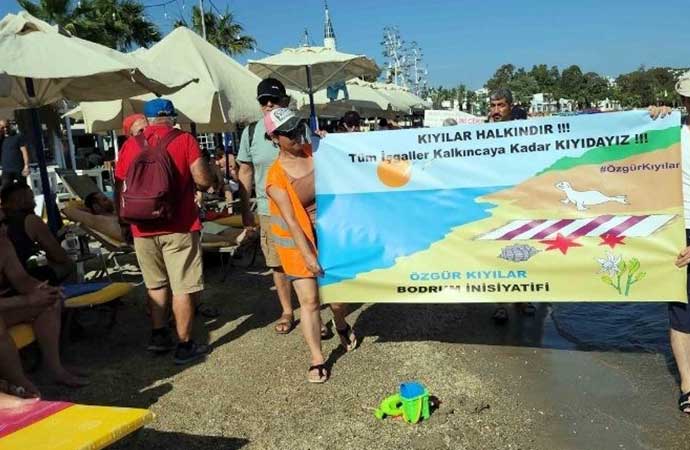 Sözcü'de yer alan habere göre, Muğla’nın Bodrum ilçesinde Özgür Kıyılar Bodrum İnisiyatifi tarafından 4 haftadır düzenlenen kıyı işgallerine karşı “Kıyılar Halkındır Halkın Kalacak” eylemi bu kez mavi bayraklı Bitez sahilinde düzenlendi.