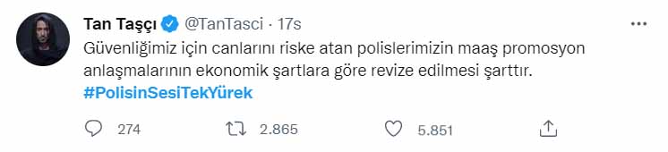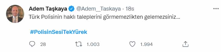 #PolisinSesiTekYürek" etiketine emniyet personellerinin yanı sıra sanat ve siyaset dünyasından bazı isimler de destek verdi.