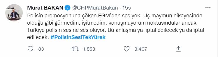 Sayısız kez açıklama yapmamıza rağmen Polisimizin maaş promosyonu üzerinden inatla dezenformasyon yapan CHP İzmir Milletvekili Murat Bakan hakkında suç duyurusunda bulunulacaktır.