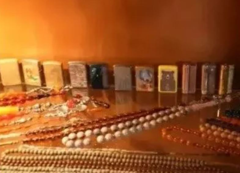 Siyah renklerinin hakim olduğu bir evi olan şarkıcının evinde en dikkat çeken detaylardan biri ise tespih koleksiyonu oldu.