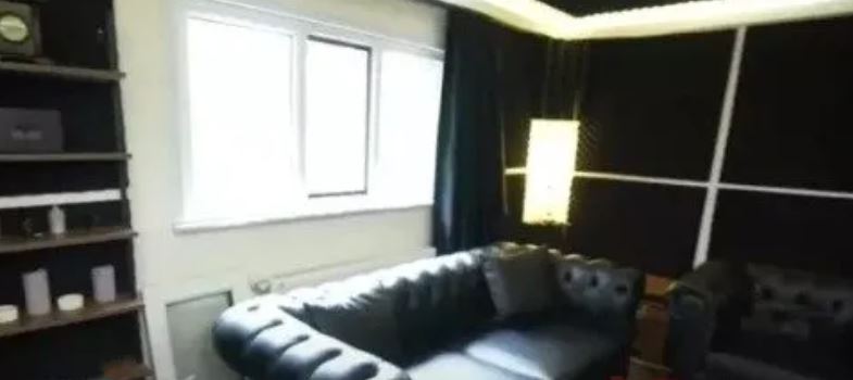 Siyah tonlarının sıklıkla kullandığı evinde şarkıcının deri koltukları siyah perdeleri oldukça göz kamaştırdı..