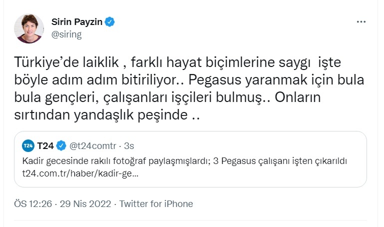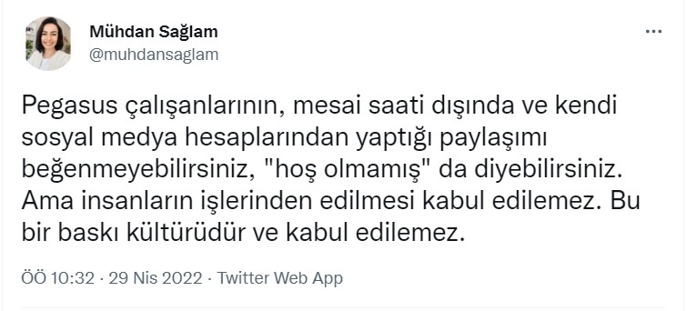 Pegasus İnsan Kaynakları'ndan ise "Kişisel Verilerin Korunması Kanunu" çerçevesinde konuya ilişkin bilgi verilmesinin söz konusu olmadığı bildirildi.