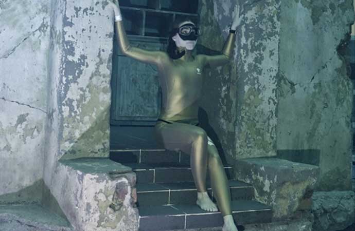 Milli Dalışçı Şahika Ercümen, Birleşik Arap Emirlikleri'nin Dubai şehrinde bulunan 60 metre derinliğe sahip dünyanın en derin havuzu "Deep Dive Dubai" de antrenmanlara başladı.