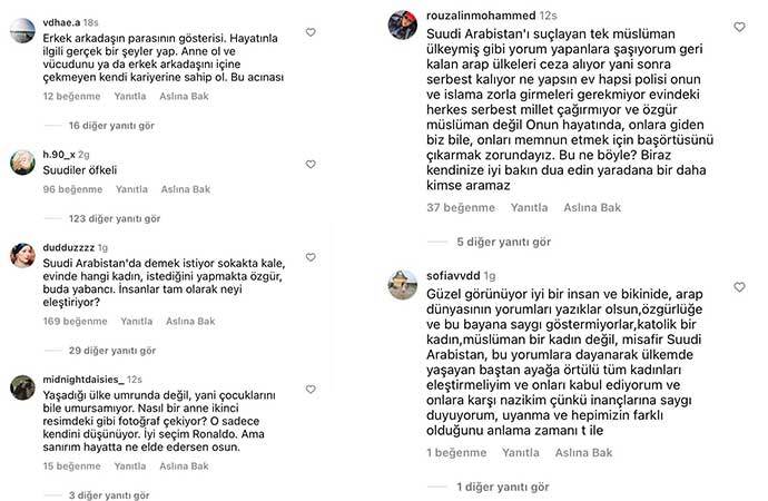 Bu kez de çift Georgina Rodriguez’in Instagram hesabında yaptığı paylaşımla gündeme geldi. Suudiler Rodriguez'in fotoğrafını yorum yağmuruna tuttu. Kimileri paylaşımı yanlış bulmazken kimileri Rodriguez'i savundu.