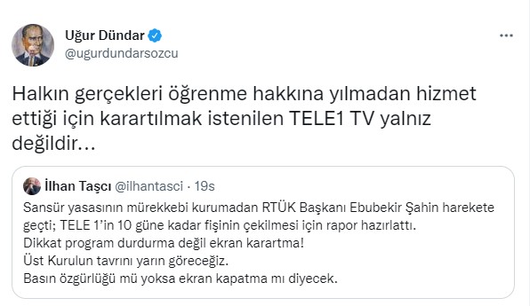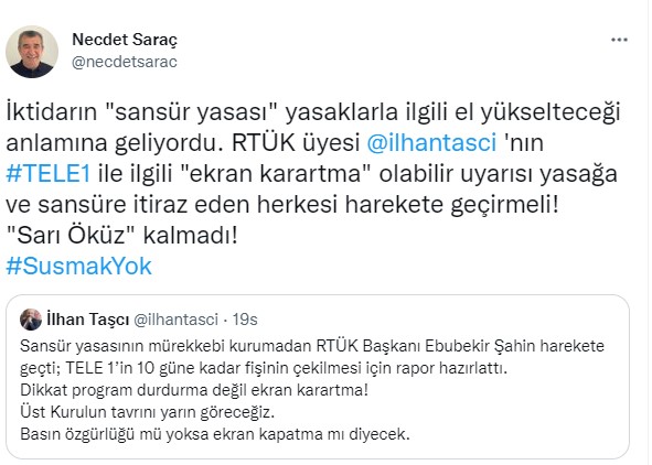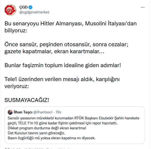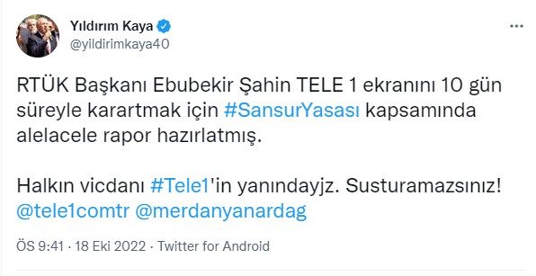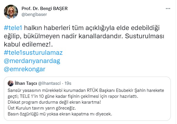 RTÜK'ün TELE1'i 'Susturma' hazırlığına tepki yağıyor! 'Sansüre itiraz eden herkesi harekete geçirmeli'