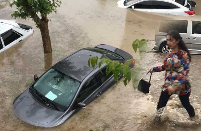 Yağmur sularının Kap Cami Mahallesi’nde bulunan Mimar Sinan Ortaokulu bahçesinde birikti. Okul bahçesinde biriken yağmur suları yaklaşık 1,5 metreyi aştı. Göle dönen okul bahçesindeki 80'e yakın araç sular altında kaldı. Araç sahipleri araçlarını kurtarmak için adeta seferber oldu.