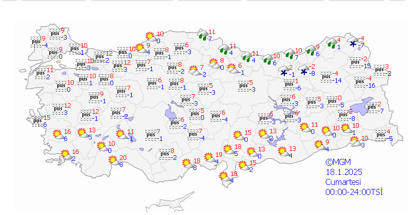 Meteoroloji Genel Müdürlüğünün yaptığı son tahminlere göre, hafta sonunda yurdun büyük bir bölümünde parçalı ve çok bulutlu bir hava hakim olacak. İç ve doğu kesimlerinde ise buzlanma ve don ile birlikte pus ve yer yer sisin etkili olması bekleniyor.