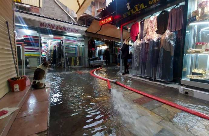 Sağanakta, önceki gün su baskınlarının yaşandığı Tarihi Kemeraltı Çarşısı ise yine sular içinde kaldı.