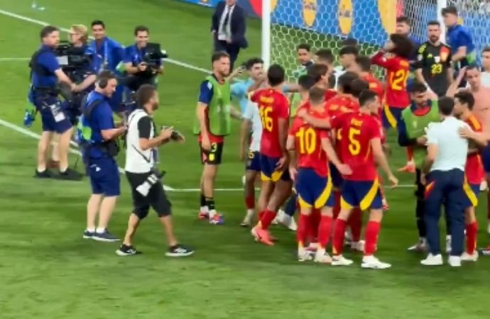 EURO 2024 yarı finalinde İspanya, Fransa'yı 2-1 yenerek turnuvada final biletini alan ilk ülke oldu. Karşılaşmanın ardından İspanyol futbolcular, final sevincini taraftarıyla büyük bir coşku içinde kutladılar.