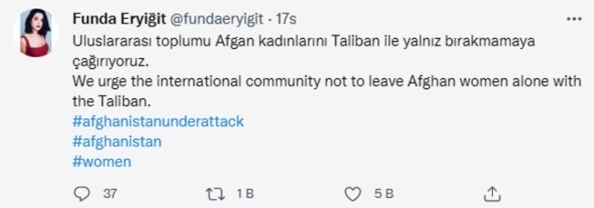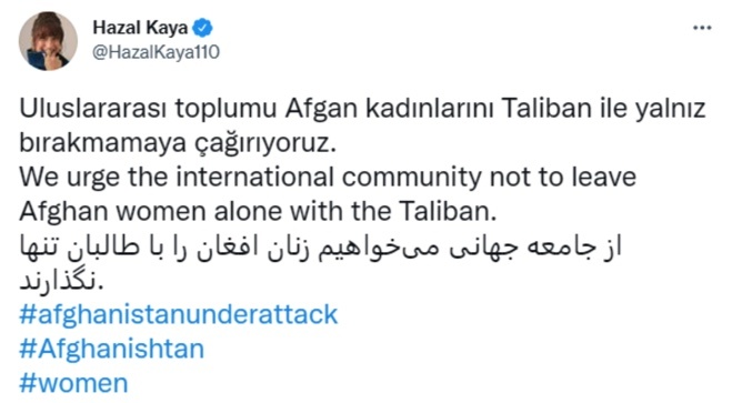 Türkiye'den birçok sanatçı da ulusal farkındalık yaratmak adına Afgan kadınlar için sosyal medya hesaplarından çağrıda bulundu.