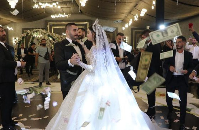 Şanlıurfa’da İzol ve Eyidoğan çiftinin düğününde geline 7 kilo altın takıldı. Gelin, bilezik, taç, kemer, gerdanlık ve kolyenin ağırlığı nedeniyle yürümekte zorlandı.
