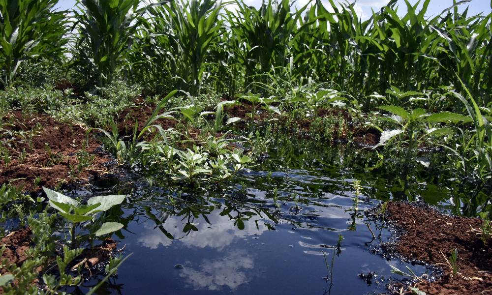 Bölgede bulunan arazideki taşları temizleyen iş makinesi operatörü, yanlışlıkla mahalleden geçen petrol boru hattının delinmesine neden oldu.