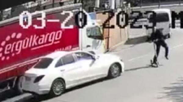 Kaza anı güvenlik kameralarına saniye saniye yansıdı. Görüntülerde, scooter ile ters yönden ilerleyen Aydın'a otomobilin çarptığı, savrulup takla attıktan sonra yere düştüğü yer alıyor. Sürücünün de durmayarak aracıyla kaçtığı kameraya yansıyor.