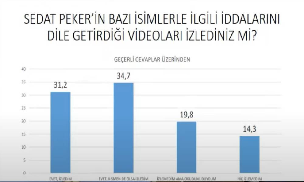 "Sedat Peker'in bazı isimlerle ilgili iddialarını dile getirdi videoları izlediniz mi?" sorusuna verilen yanıtlar şu şekilde: