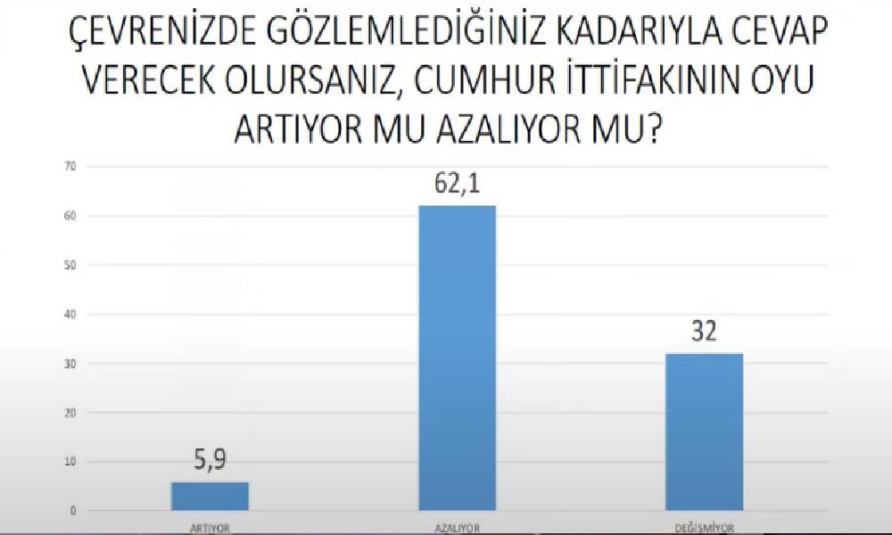Çevrenizde gözlemlediğiniz kadarıyla cevap verecek olursanız, Cumhur İttifakı'nın oyu artıyor mu azalıyor mu?