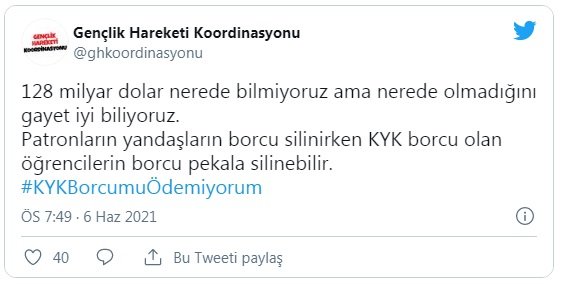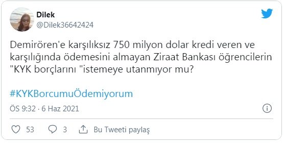 Paylaşımlarda “Madem Demirören ödemiyor, o zaman ben de KYK borcumu ödemiyorum”, “Demirören’den veya bir gecede milyonlarca TL vergisi silinen yandaş şirketlerden tahsil etsinler” diyerek tepkiler gösterilmesinin yanı sıra işsizlik sorunu da dile getirildi.