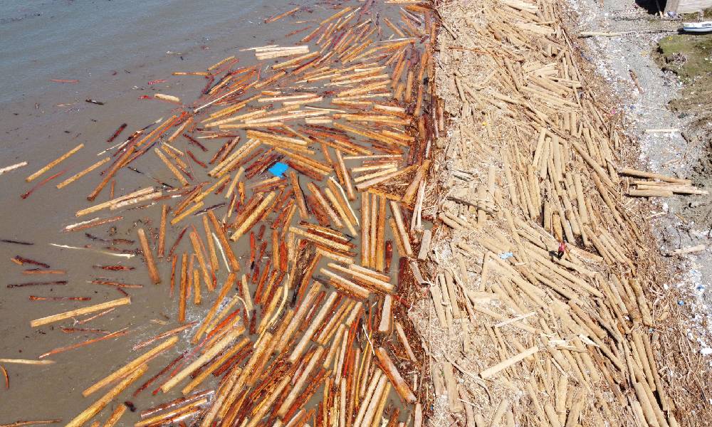 Sinop’un Ayancık ve Türkeli ilçelerinde etkili olan afette binlerce tomruk sel sularıyla birlikte Karadeniz’e ulaştı.