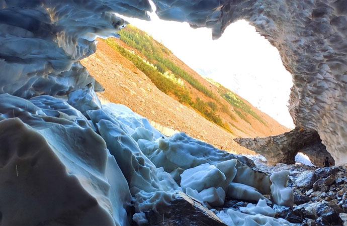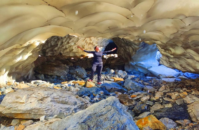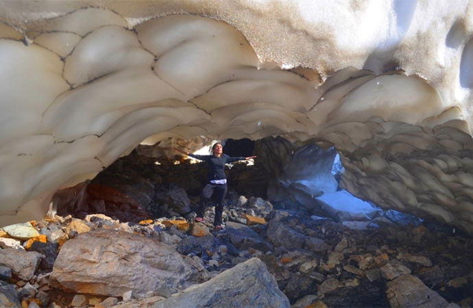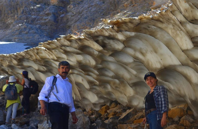 2 bin 973 rakımlı Mereto Dağı`nın eteklerinde bulunan yaklaşık 2 bin 500 metre rakımdaki yaylada kış aylarında düşen ve biriken kar, havanın ısınmasıyla eriyerek tünellere dönüşüyor.