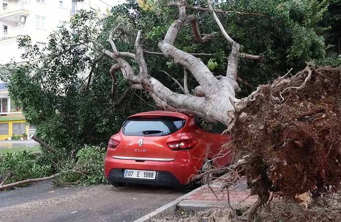 ANTALYA: Şehrin birçok noktasında devrilen ağaçlardan bazıları otomobillerin üzerine düştü, bazıları da yolları kapattı. Bu nedenle çok sayıda araçta hasar meydana geldi. İtfaiye ve belediye ekipleri, devrilen ağaçları kaldırmak için çalışma başlattı. Antalya'da fırtınanın bugün akşam saatlerinde etkisini kaybetmesi bekleniyor.