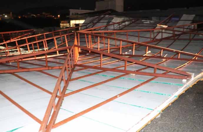 DENİZLİ: Gece saat 02.00 sıralarında başlayan kuvvetli rüzgar özellikle kent merkezinde etkili oldu. Kuvvetli rüzgar nedeniyle Merkezefendi ilçesi Kaynarca Caddesi'nde bir iş yerinin yaklaşık 200 metrekare genişliğindeki çatısı yerinden sökülerek uçtu. Tamamı uçan çatı nedeniyle cadde trafiğe kapandı.