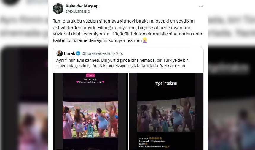 Sinema salonlarında geçen hafta vizyona giren 'Gelin Takımı' isimli filmin Türkiye ve yurt dışı gösterimleri arasındaki projeksiyon ışık farkı sosyal medyada gündem oldu. Doğa Can Anafarta'nın yönetmenliğini üstlendiği 'Gelin Takımı' filmi, geçtiğimiz hafta vizyona girdi.
