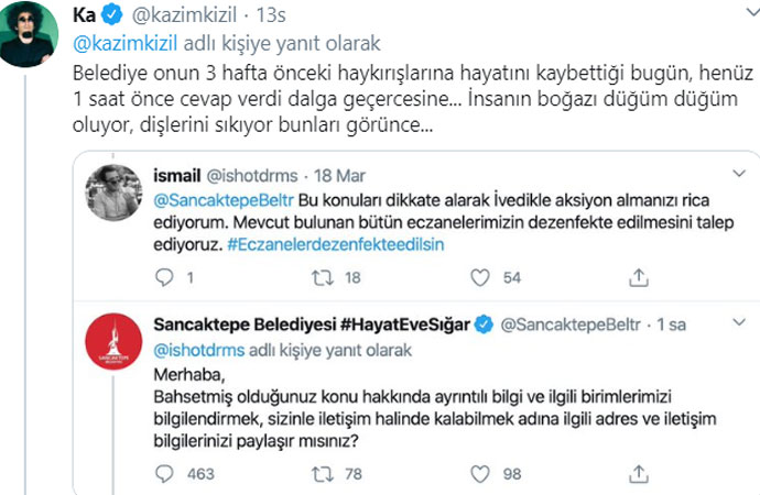 Belediye onun 3 hafta önceki haykırışlarına hayatını kaybettiği bugün, henüz 1 saat önce cevap verdi dalga geçercesine... İnsanın boğazı düğüm düğüm oluyor, dişlerini sıkıyor bunları görünce.